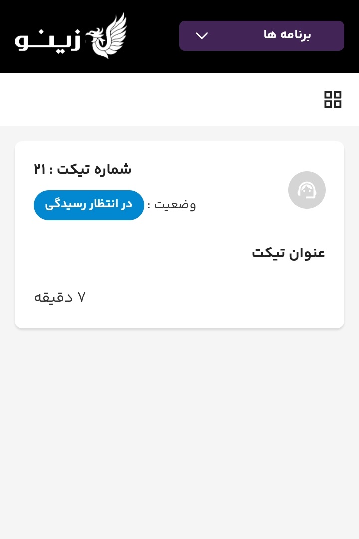 5- پس از ارسال تیکت، یک پیامک برای شما ارسال می شود و نیز تیکت در بخش "لیست تیکت ها" در وضعیت "در انتظار رسیدگی" و به شکل زیر برای شما نمایش داده می شود تا پشتیبانان و کارشناسان تیم زینو آن را بررسی نمایند.