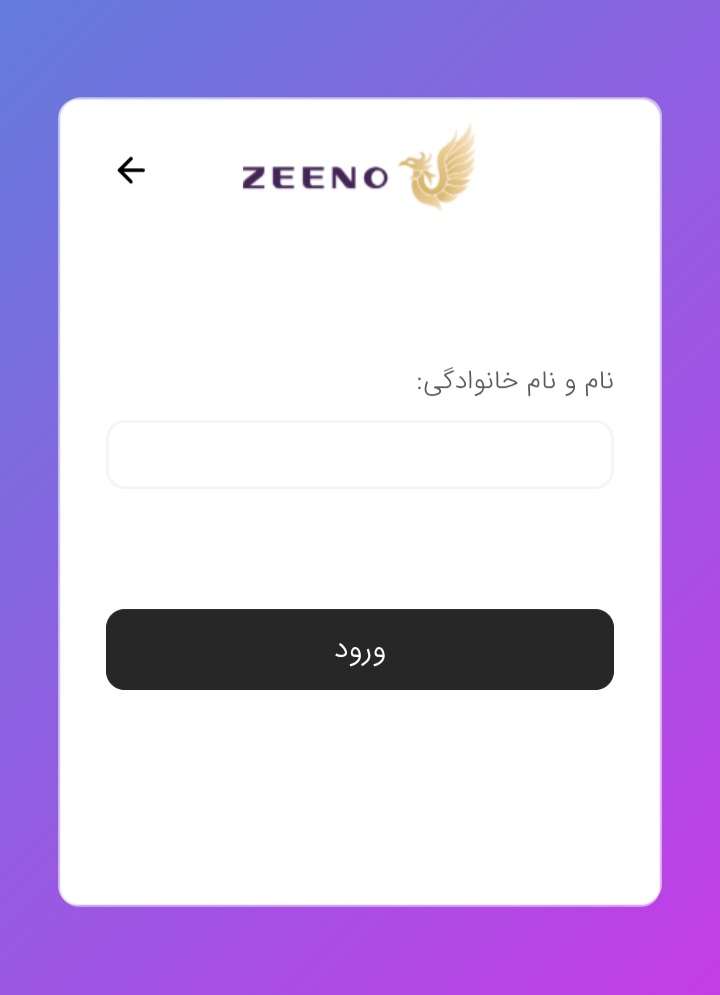 4- در صورتی که پیش از این در نرم افزار زینو ثبت نام نکرده اید، در این قسمت باید نام و نام خانوادگی خود را وارد کنید و روی دکمه "ورود" کلیک کنید.