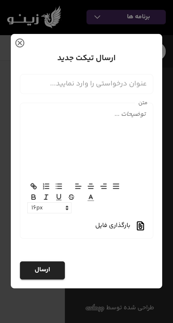 تیکت نقطه اصلی ارتباط بین شما و تیم پشتیبانی است. هر تیکت عنوان و متن دارد و مکالمه درون همان تیکت ادامه پیدا میکند. برای ارسال تیکت از طریق راهنمای زیر اقدام کنید.